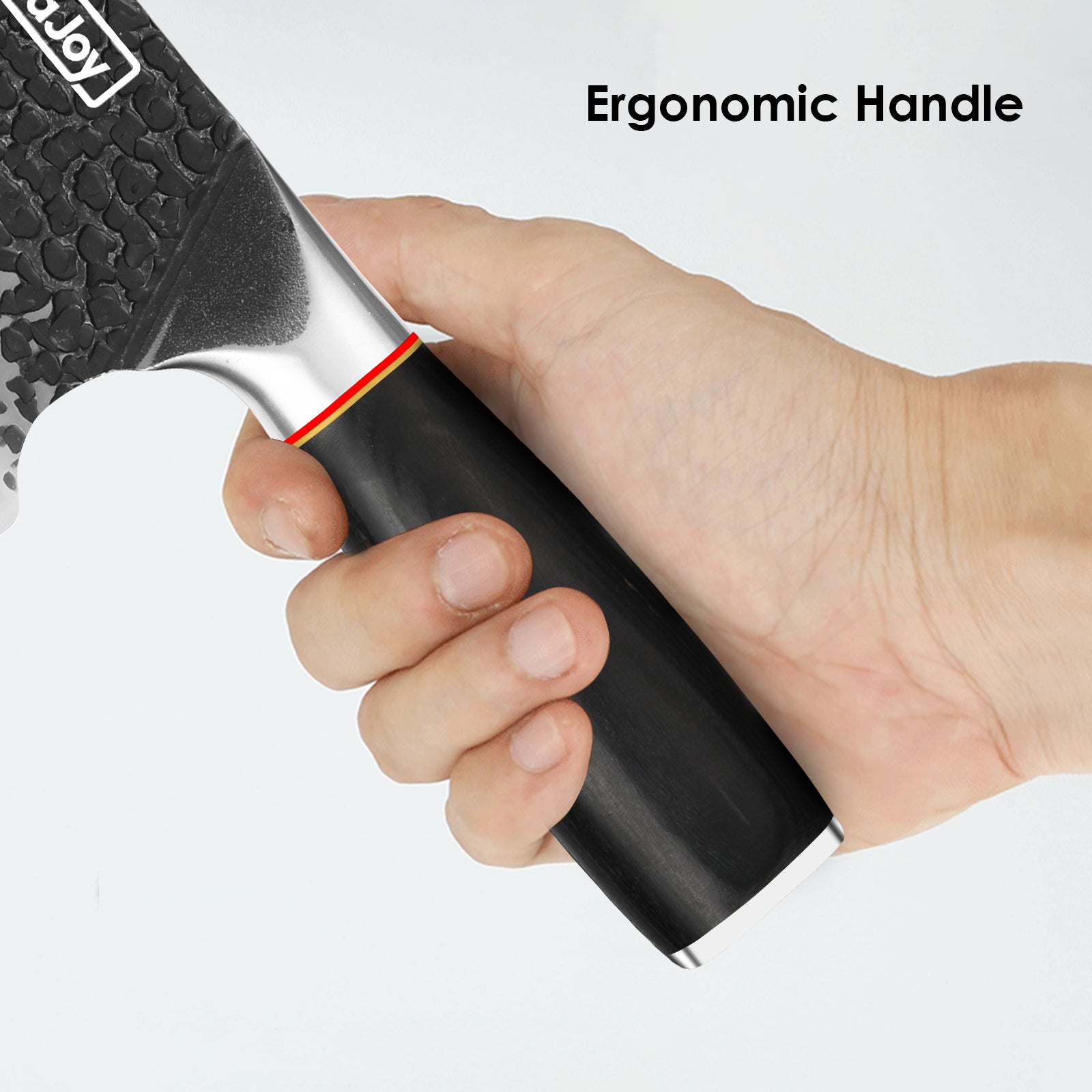 Ergonomic G10 Handle - Chopping knife used premium wood material, not easy slip and break, both right and left hands can use easily, and this handle is ergonomic and provides a comfortable grip.