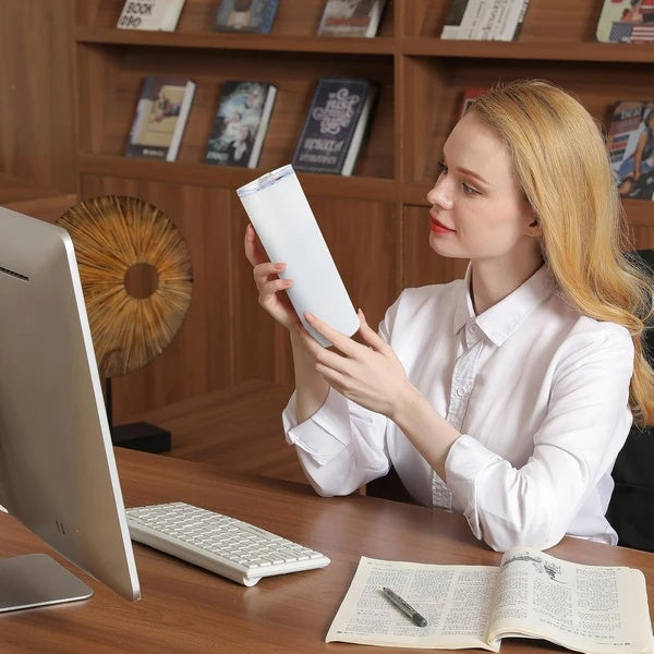 Keep your beverages at the perfect temperature with this 20oz stainless steel vacuum insulated tumbler. Designed with a sleek white finish, this double-wall tumbler keeps drinks hot for up to 6 hours or cold for up to 12 hours. It features a secure lid and reusable straw, making it ideal for coffee, tea, smoothies, or water on the go. Whether you're commuting, working, or traveling, this BPA-free, spill-resistant tumbler is stylish, durable, and easy to clean—your ideal everyday companion.